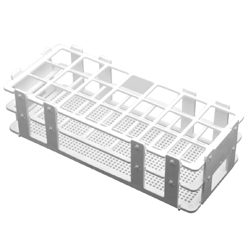 Made from polypropylene, these space saving, submersible, autoclavable test stands can be easily be disassembled for cleaning purposes. These stands can sink in a water bath and maintain their stability even in agitated water. The base is in the form of a grid with square openings and has fold up sides and end bars that lock with top of the stand. Available in following sizes: